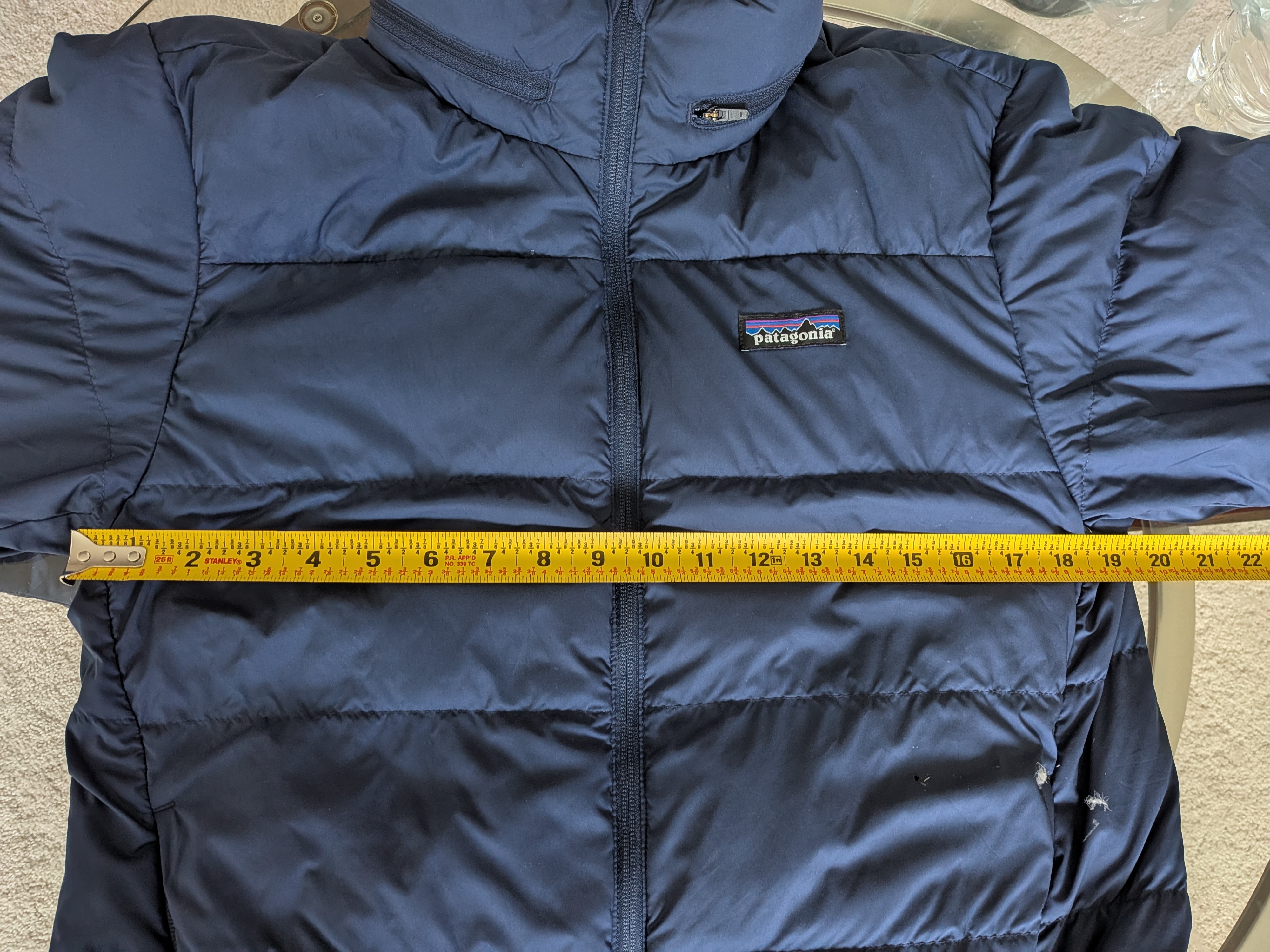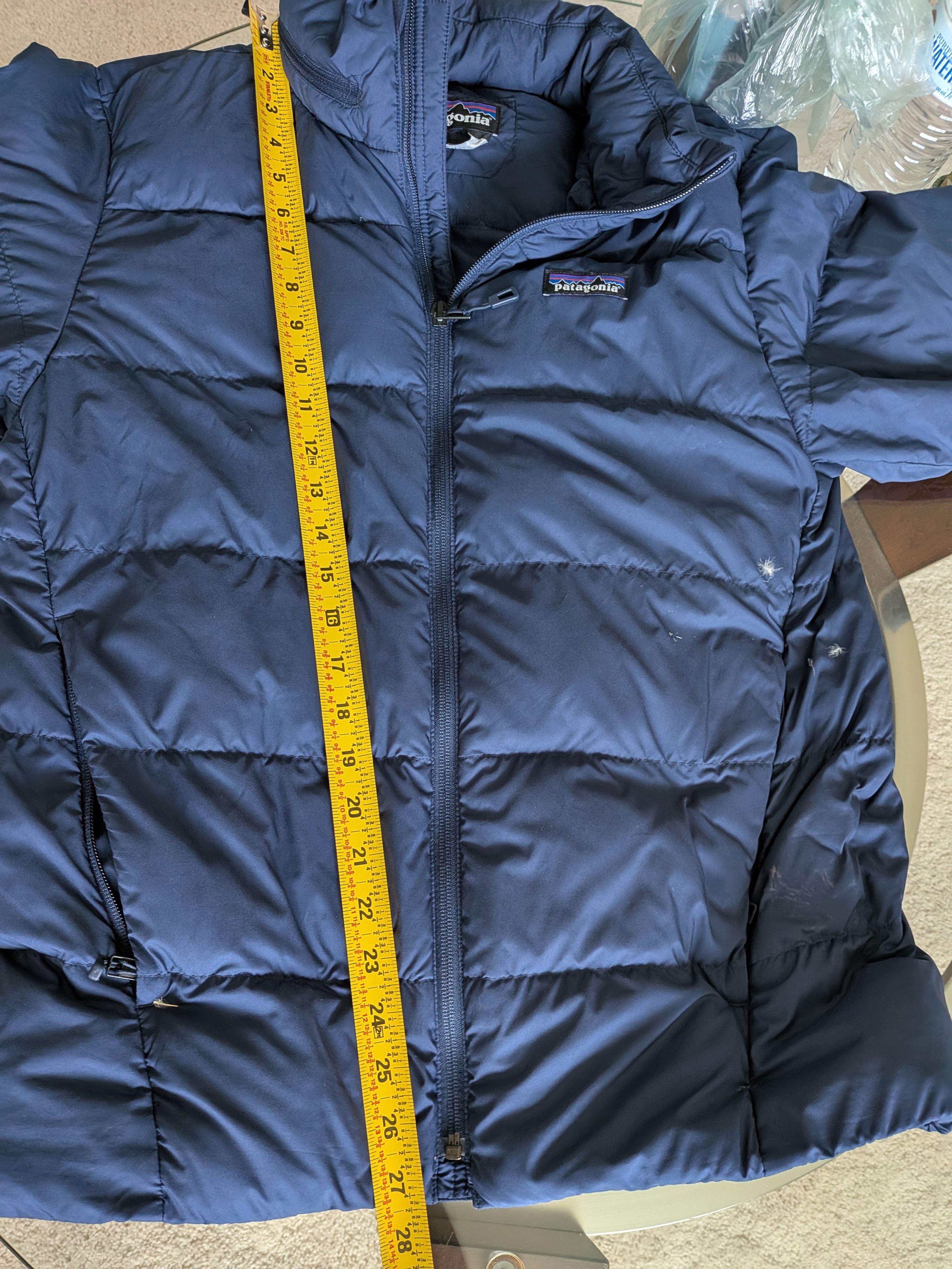 | Patagonia | navy blue | M | puffer jacket | good fit |